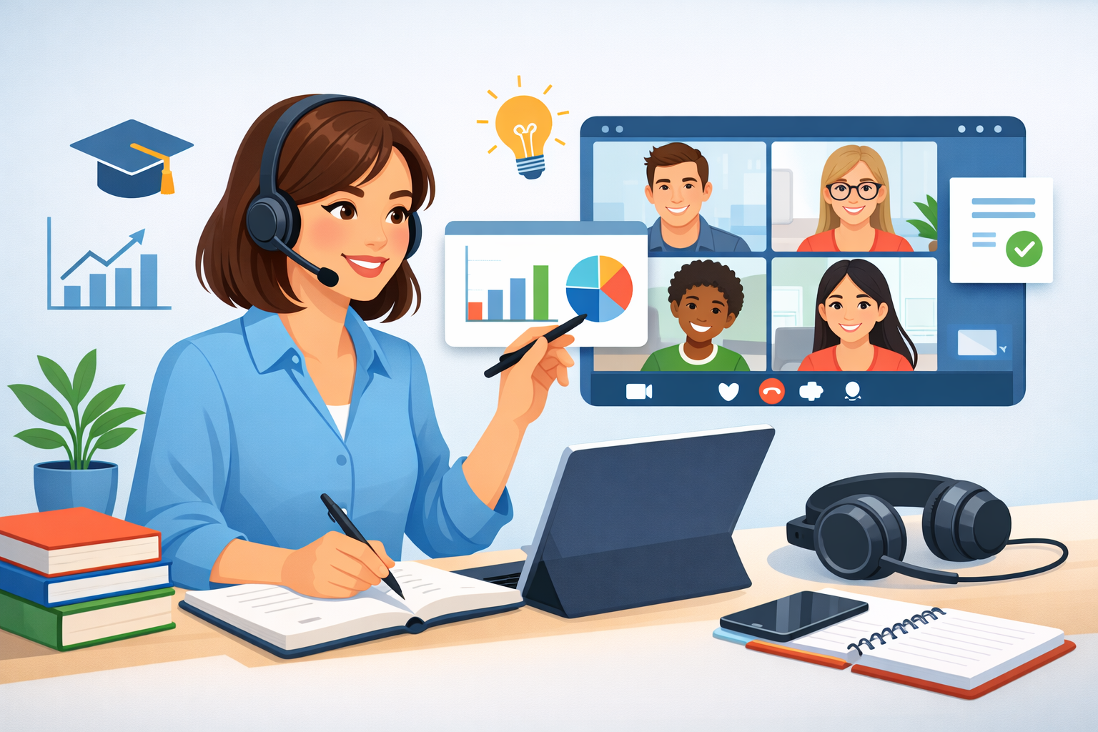 It’s very important to communicate clearly. Teachers should keep eye contact with their students through the webcam, speak clearly, and get them to take part. When you set expectations at the beginning of the course, students will know the rules, deadlines, and what they need to learn. Regular tests help keep track of how well students are doing, and timely feedback encourages and helps them learn.