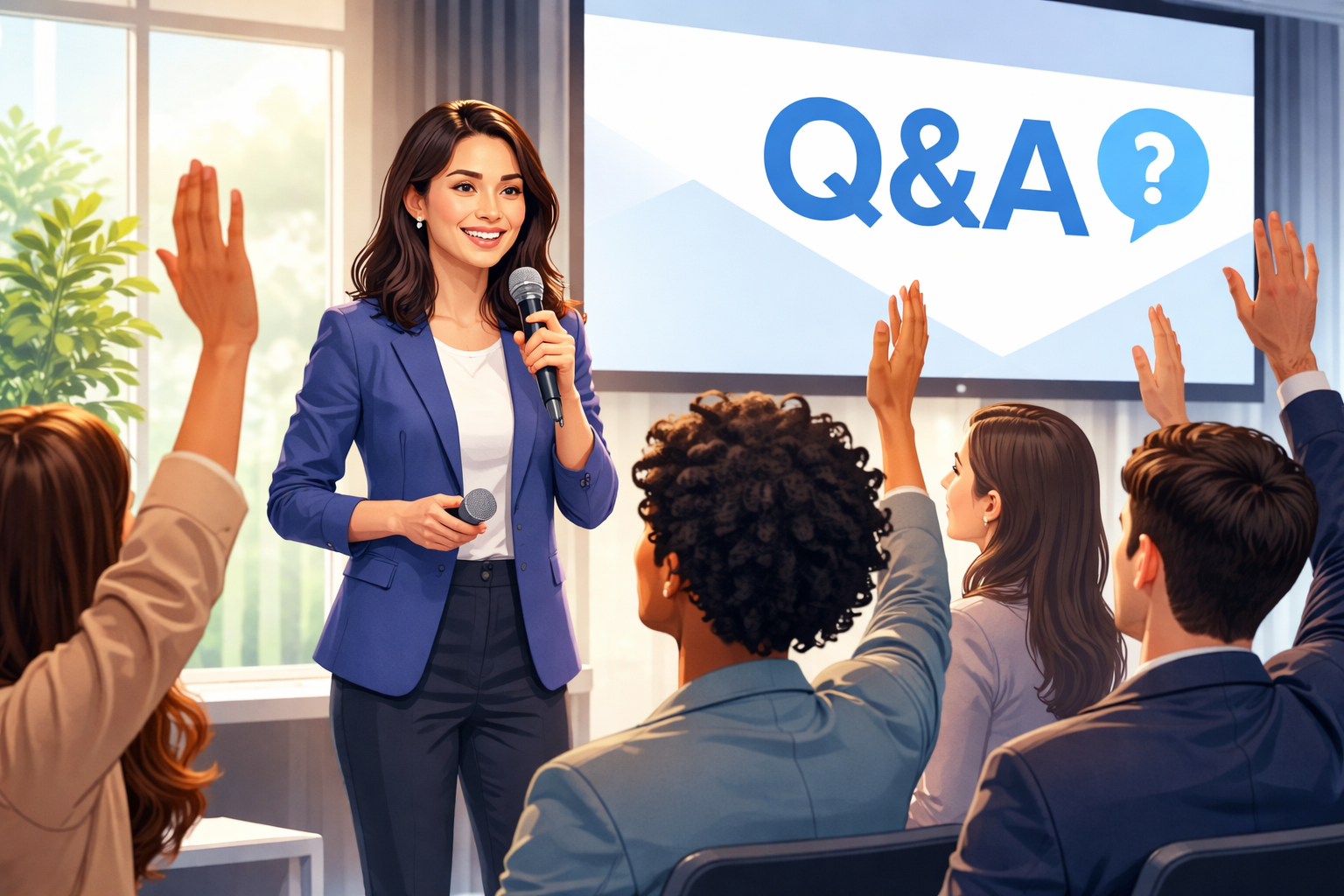To run a good Q&A session, you need to be prepared, listen carefully, be clear, and act professionally. You can turn potentially stressful situations into chances to get involved and build credibility by anticipating questions, making the space feel welcoming, handling tough questions, and following up afterward.